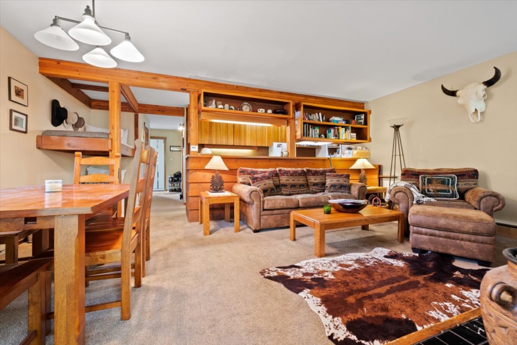 This well-appointed ground-floor unit in the Cottonwoods offers a one-bedroom, one-bath layout with an open living, dining, and kitchen design. Interior features include a fireplace, built-in bunk beds, and a window seat that enhance both function and charm. The private patio opens to nearby open space, providing a peaceful outdoor extension of the unit. Conveniently located near bike paths, public transportation, Aspen’s Market, and within easy reach of Wilson, Teton Village, and Jackson.
